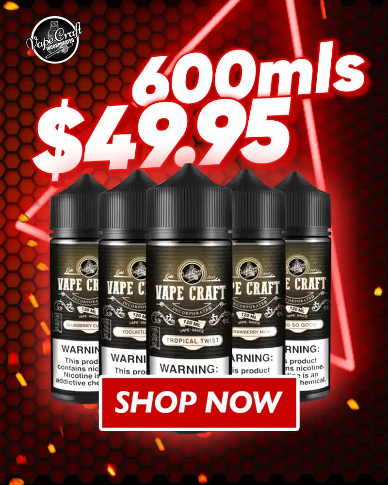 Vape Craft has become one of the most recognized suppliers of E-Liquid and vape products in all of North America. Our company believes E-Liquid currently sold on the market is too expensive and thus we sell E-Liquid at huge discounts. Our e juice is one thing that keeps our customers excited and coming back for more. With 100% USA made vape juice and seasonal flavors, there is no need to search any further for quality and consistency. We like to spice it up every couple of months by presenting our customers with a brand new unique vape flavor that has never been seen on our site before. If we get good reviews on it we will add the flavor to our main list so it can be bought as pleased.