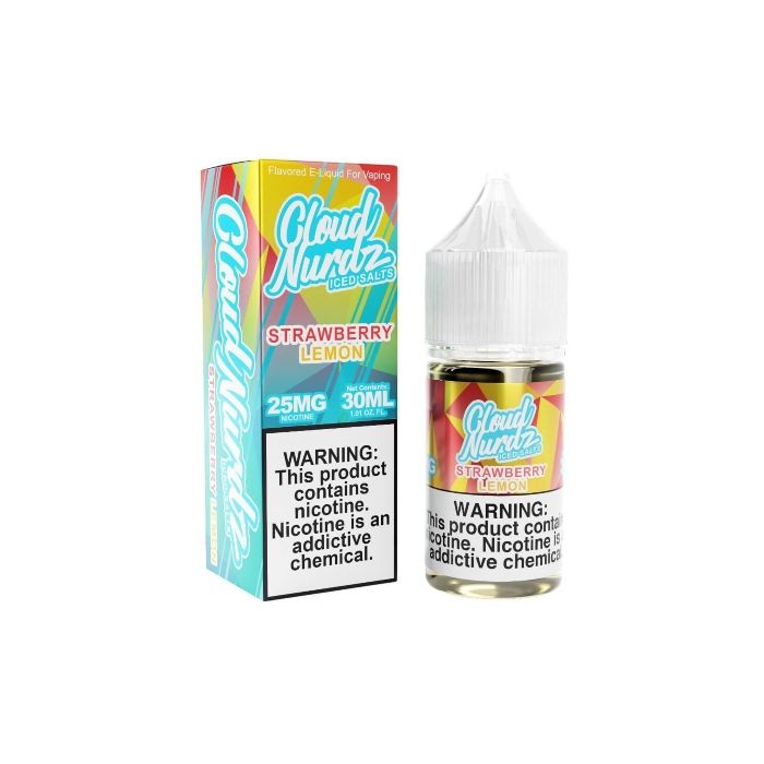 The Cloud Nurdz Iced Salt E-Liquid - Strawberry Lemon salt nic vape juice is a delicious mix of juicy, ripe strawberry and tart lemon flavors, pushed to the next level with an icy kiss of menthol. Get your bottle of Cloud Nurdz Iced Salt E-Liquid - Strawberry Lemon today!