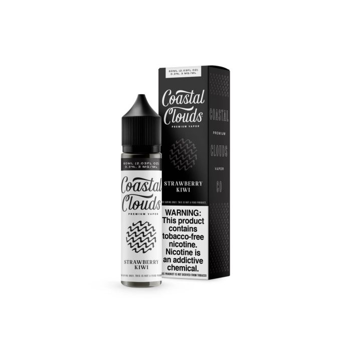 Coastal Clouds E-liquid - Strawberry Kiwi vape juice is a 60ml bottle of sweet strawberries and tangy kiwi, blended to perfection. Get your bottle of Coastal Clouds E-liquid - Strawberry Kiwi today!