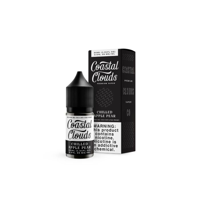Coastal Clouds Salt E-liquid - Chilled Apple Pear salt nic vape juice is a 30ml mashup of crisp apple, sweet pear, and delightfully chilly menthol. Get your bottle of Coastal Clouds Salt E-liquid - Chilled Apple Pear today!