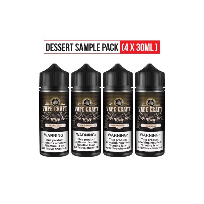 Choose 4 hand crafted dessert flavors from our world famous line of products. Simply choose your desired nicotine level and receive 4 deliciously sweet flavors right to your door step!