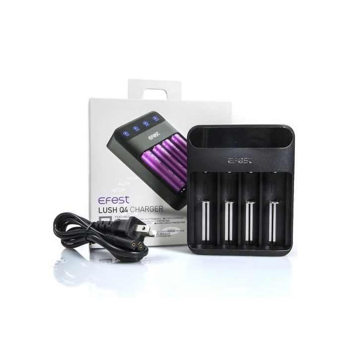 The Efest Lush Q4 smart battery charger is here. Get this amazing battery charger that is compatible with most vape batteries, while supplies last. Specs are featured below