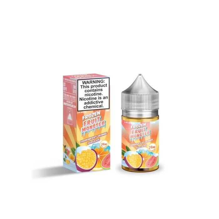 Frozen Fruit Monster Salt E-Liquid - Passionfruit Orange Guava salt nic vape juice is a sweet, tropical fruit flavor combining exotic passionfruit, juicy oranges and sweet guava with the delightful addition of chilly menthol. Pick up your bottle of Fruit Monster Salt E-Liquid - Passionfruit Orange Guava today!