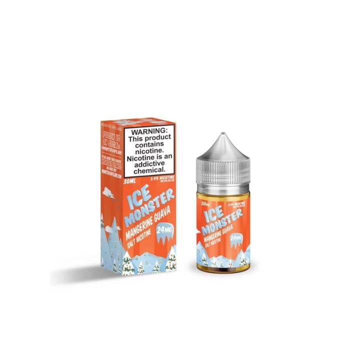 The Ice Monster Salt E-Liquid - Mangerine Guava salt nic vape juice is a chilly mix of menthol kissed sweet mango, juicy tangerine and fresh guava fruit flavors. Grab your bottle of Ice Monster Salt E-Liquid - Mangerine Guava today!