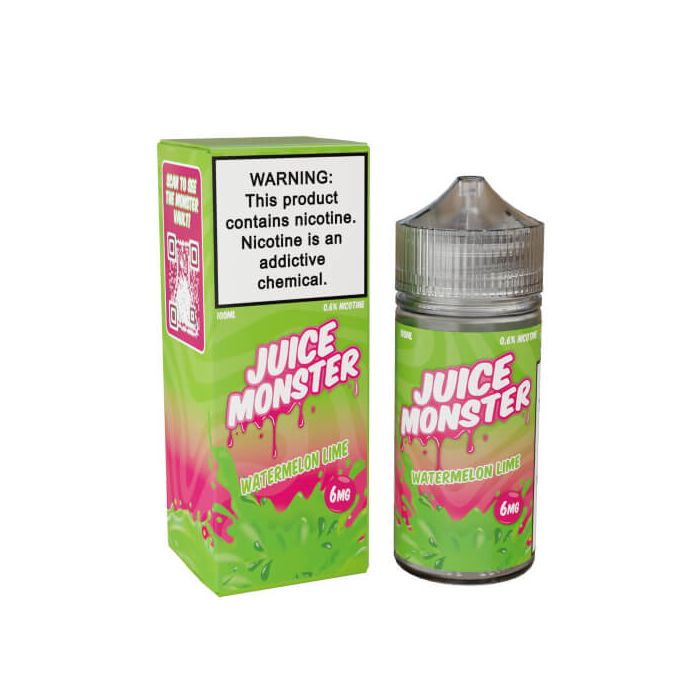 Juice Monster Watermelon Lime 100ml eliquid crafted by Monster Vape Labs is a 70 VG/30 PG blend that utilizes premium eliquid flavorings such as fresh and juicy watermelon blended with deliciously naturallime flavors that will make you think it's summer year around with each inhale of this premium E-liquid. Fill the sky with delicious beverage style vapor and your lungs with incredible flavor, brought to you by the experts at Monster Vape Labs.