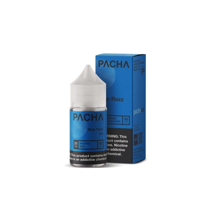 Pacha Salt E-Liquid - Blue Razz Ice salt nic vape juice is 30ml of sweet blue raspberry mixed with the icy touch of menthol flavors. Get your bottle of Pacha Salt E-Liquid - Blue Razz Ice today!