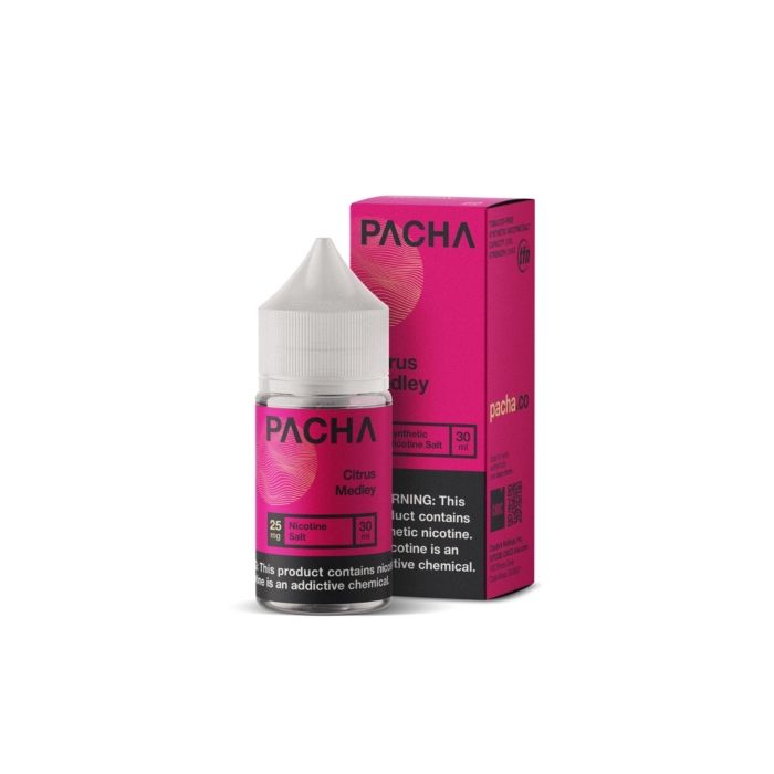 Pacha Salt E-Liquid - Citrus Medley salt nic vape juice is 30ml of juicy, mouthwateringly tart mixed citrus flavors. Get your bottle of Pacha Salt E-Liquid - Citrus Medley today!