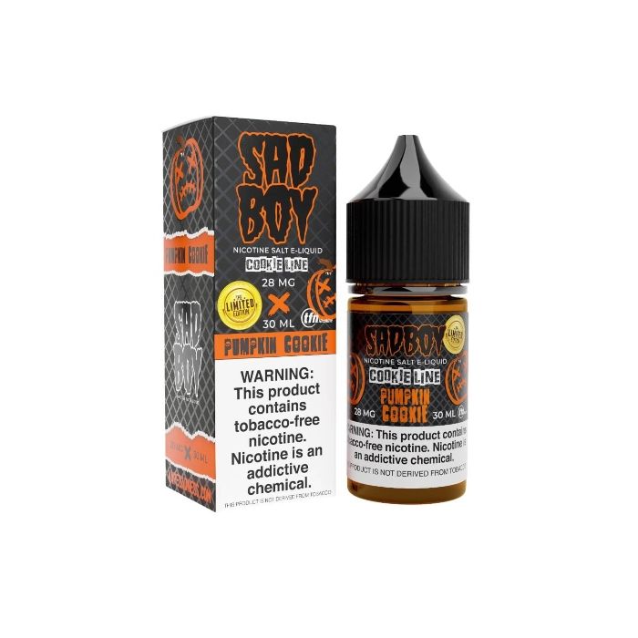 Sadboy Salt E-Liquid - Pumpkin Cookie salt nic vape juice, from the Sadboy Cookie line, is a delightful mix of spiced pumpkin and sweet buttery cookie flavors. Get your bottle of Sadboy Salt E-Liquid - Pumpkin Cookie today!