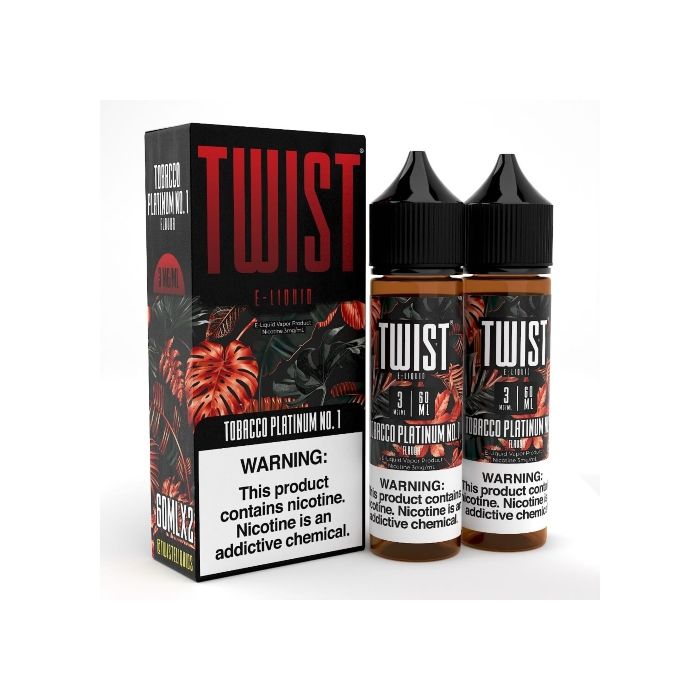 The Twist E-Liquid - Tobacco Platinum No. 1 vape juice is a rich, bold, full bodied tobacco flavor for you vaping pleasure. Get your bottle of Twist E-Liquid - Tobacco Platinum No. 1 today!