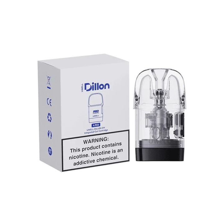 Dillon EM Replacement Pods feature either 0.6ohm or 0.9ohm integrated coils, giving you a great tasting, flavorful puff of your vape juice of choice every time. The Uwell Dillon EM Replacement Pods have a 2mL capacity bringing you a longer vape than most.Uwell Dillon EM Replacement Pods can use nic salts and vape juice, Get your Uwell Dillon EM Replacement Pods and always have some vape juice on deck for your vape device.