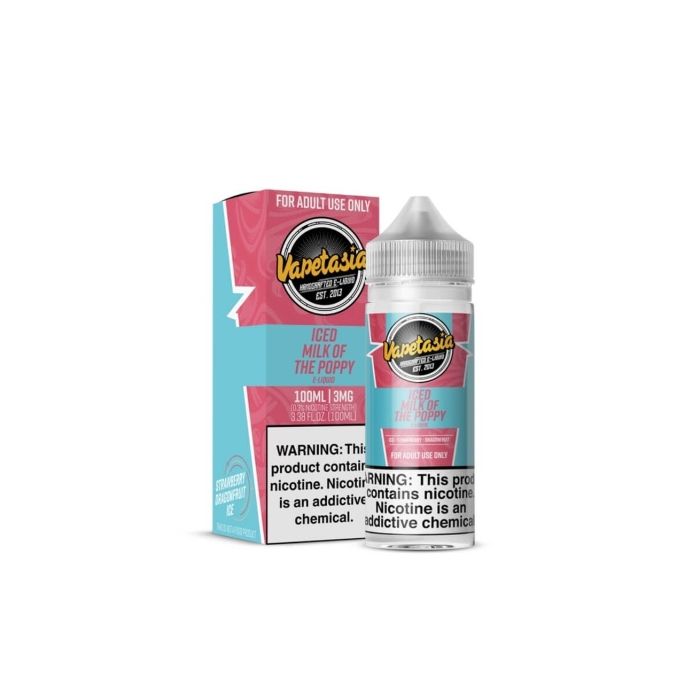 The Vapetasia E-Liquid - Iced Milk of the Poppy vape juice is a cool iteration of the classic Milk of the Poppy, with a flavor combination of ripe strawberries, sweet dragonfruit and rich cream with the icy thrill of menthol. Pick up your bottle of Vapetasia E-Liquid - Iced Milk of the Poppy today!